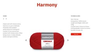 – Made from 4 to 6 Harmony or similar yarns (e.g Charme) and with sewing threads. Choose your colors at Harmony/Charme Multicolor sessions